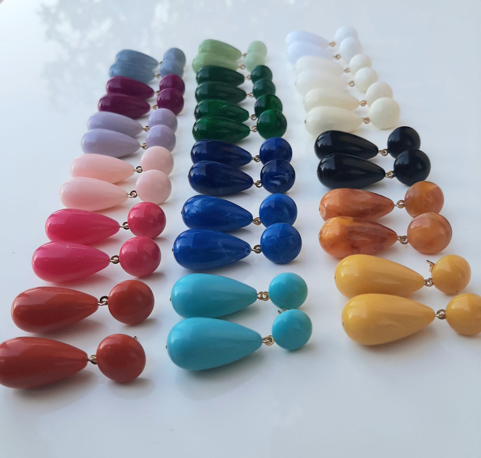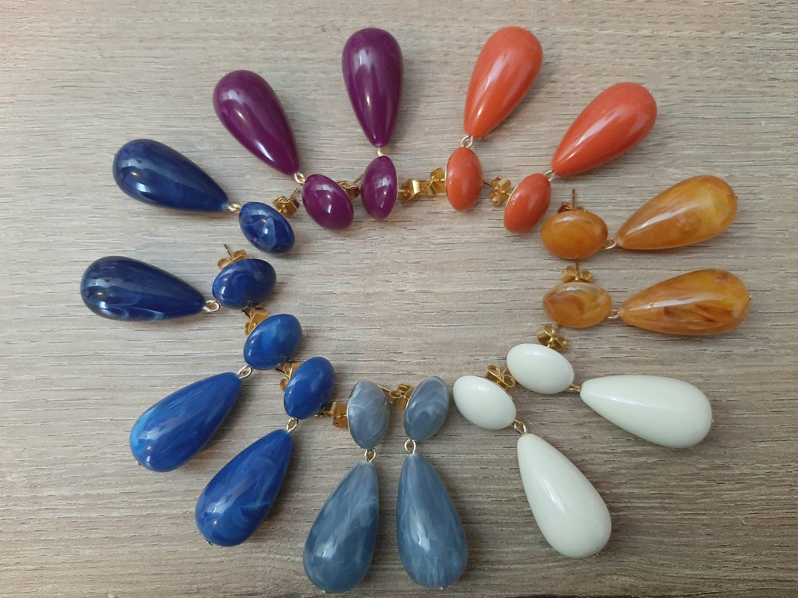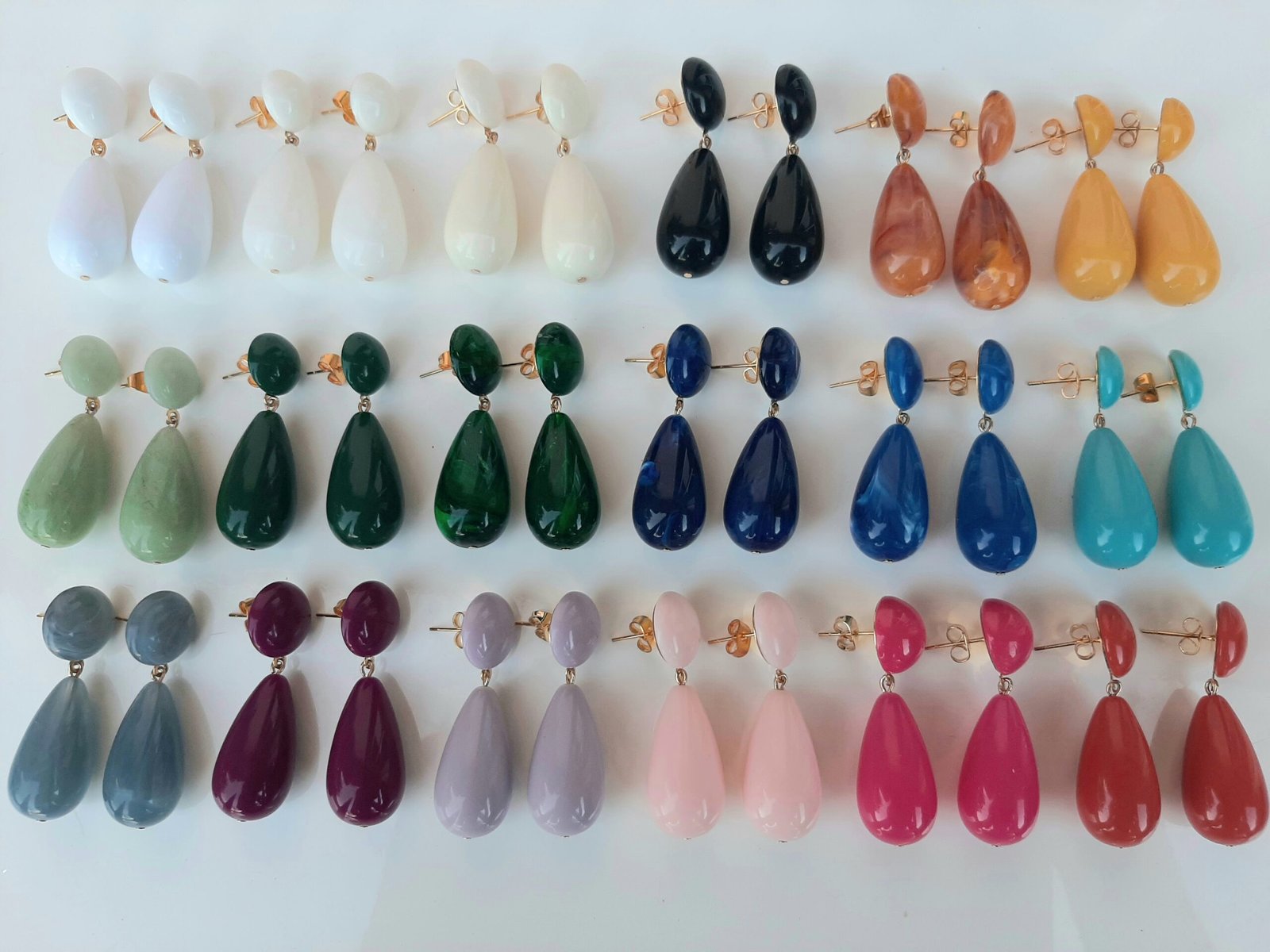 Perles en résine et apprêts, supports et clous en acier inoxydable hypoallergénique.